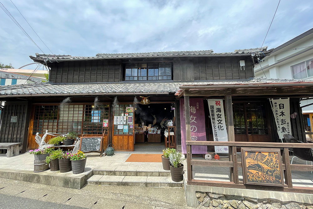 昭和初期の古民家を改装。座敷や台所なども昔の趣を残して、素敵な空間に! また梁を利用したロフト風に改装した2階席もおすすめです。 喫茶での一休みもOK!お土産も販売。海女の資料なども展示しており、 参拝の道中、町内散策の際、ぜひぜひお立ち寄り下さい。